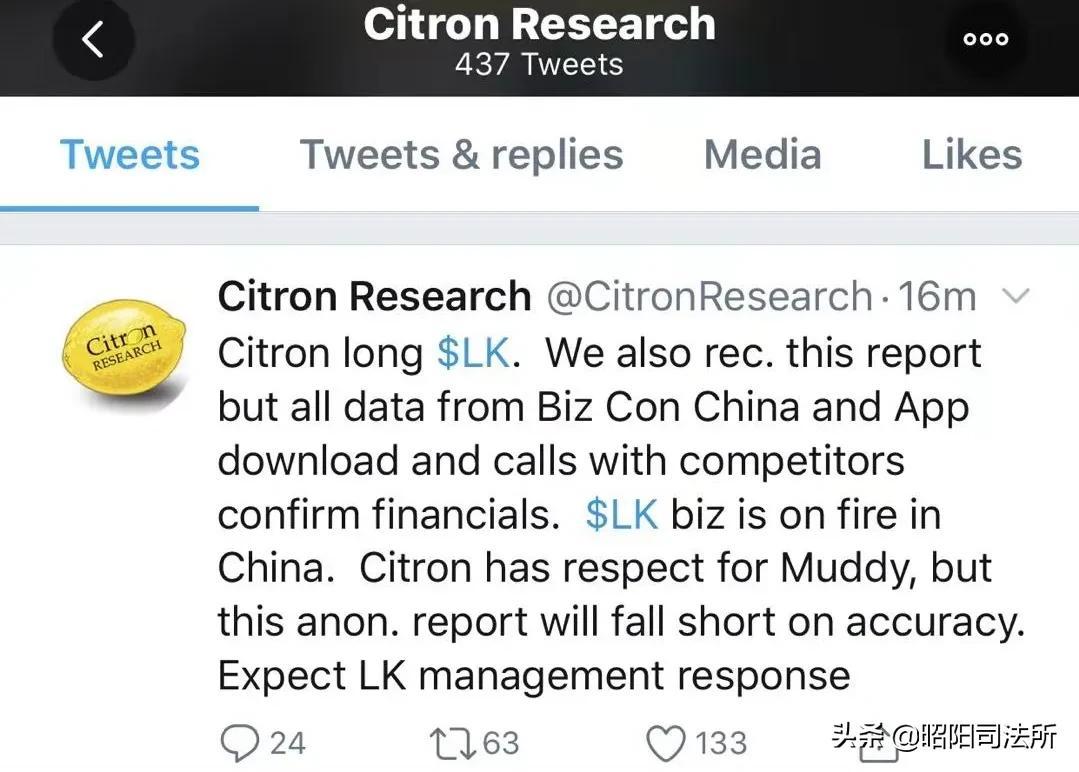有趣的是,就本次瑞幸咖啡事件,在2020年2月1日浑水发布做空报告之后,香橼在推特上发布评论,并不支持浑水研究的观点。
