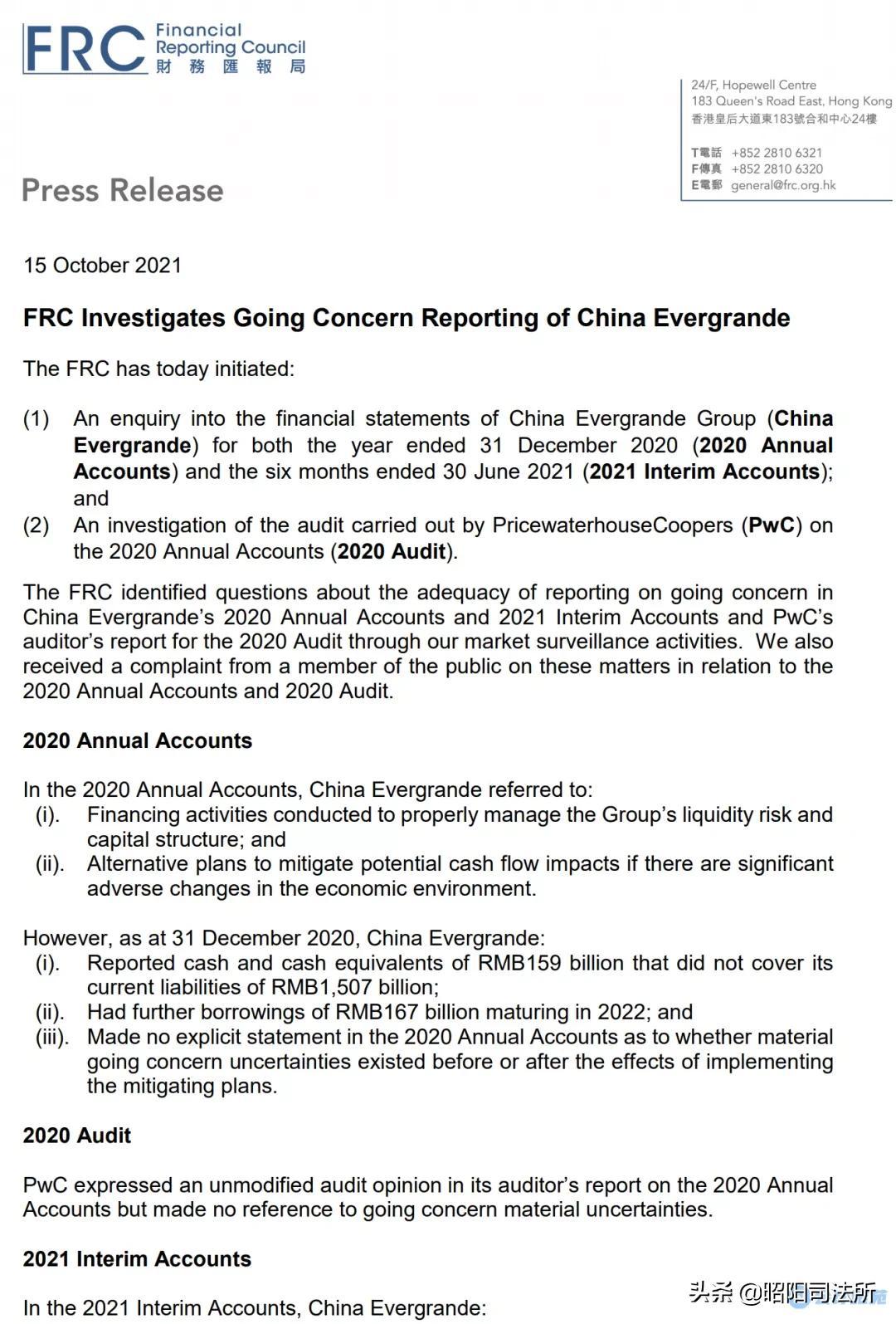 (1)就中国恒大集团截至2020年12月31日止年度报表,以及截至2021年6月30日的六个月的中期财务报表展开查询!