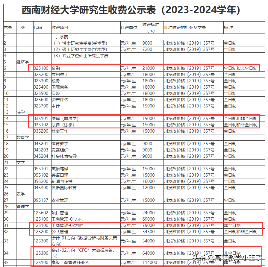 西南财经2023年非全日制研究生的学费又比较高的工商管理MBA—79000元/年、高级工商管理EMBA—114000元/年,也有普通标准的法律硕士—15000元/年。