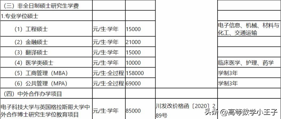 电子科大的这些非全日制专硕,除了MBA和MPA学费比较高之外,其他的学费处于相对合理,相对于学校的名气和实力,工程硕士15000/年确实不贵。