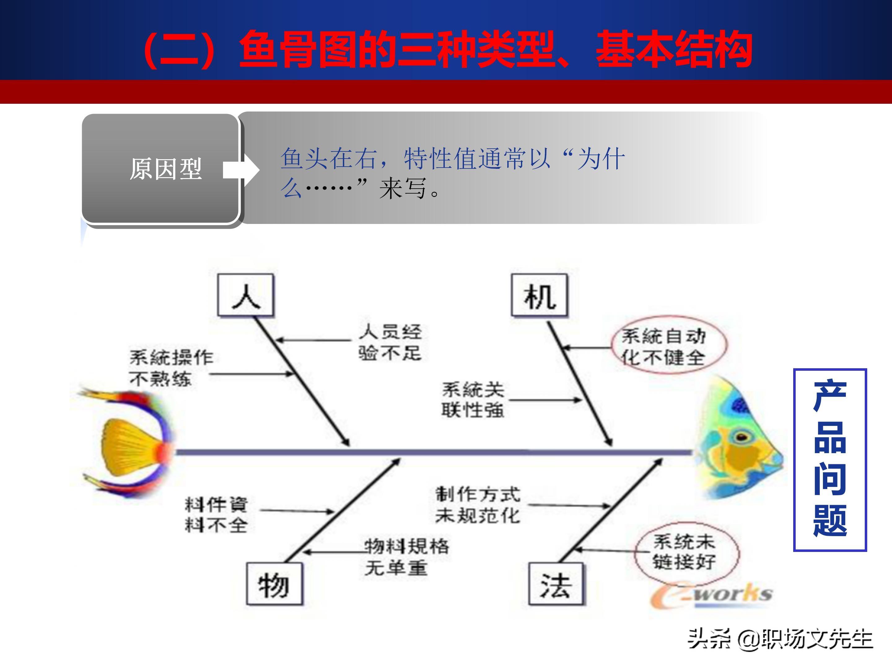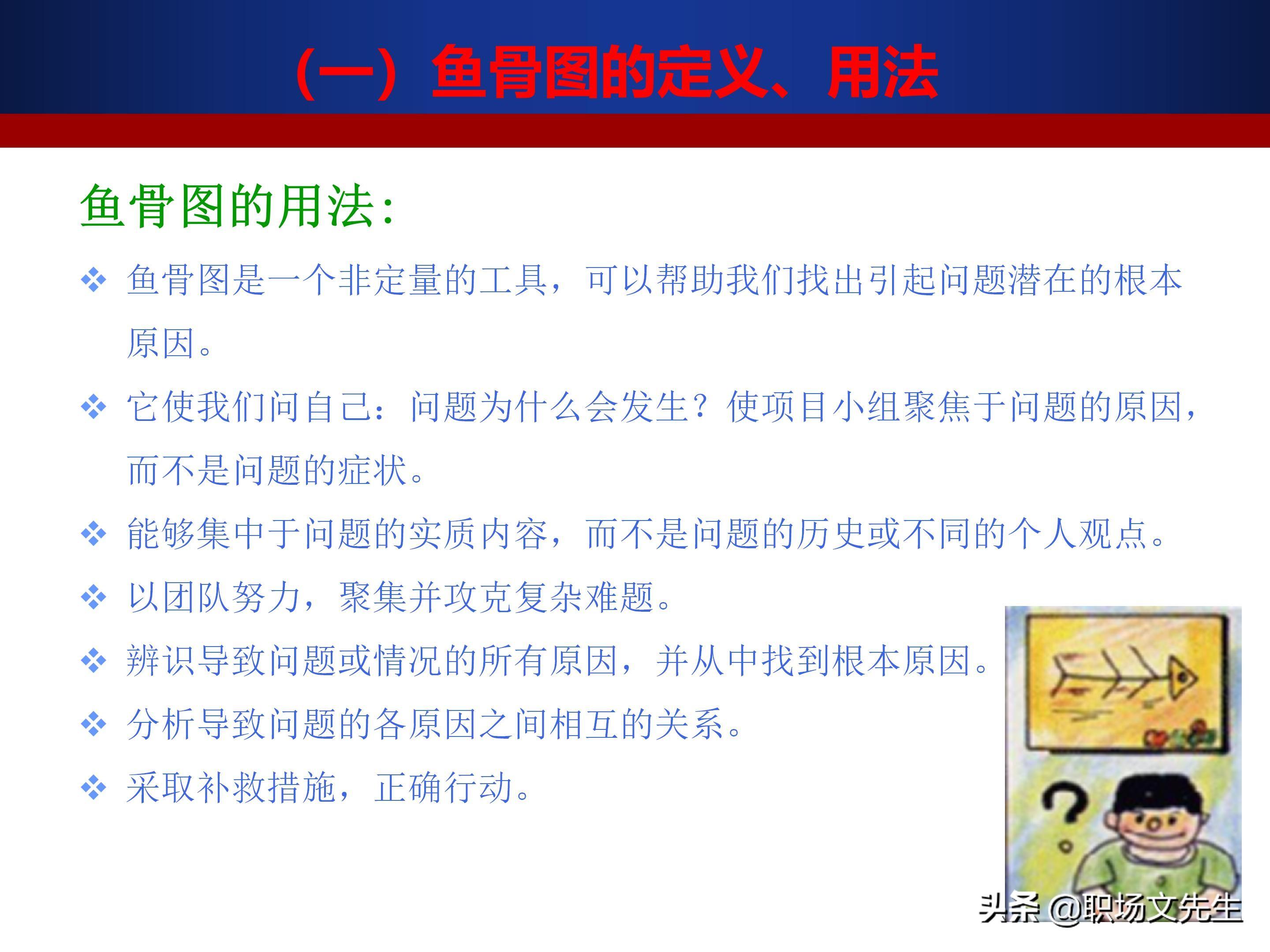 鱼骨图是一个非定量的工具,可以帮助我们找出引起问题潜在的根本原因。