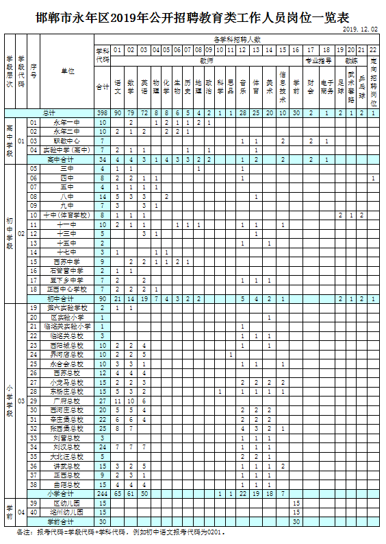 招聘人数为398名,均为专业技术初级岗位,其中:高中(含职高)教师31名,初中教师84名,小学教师244名,幼儿园教师30名,职业高中专业指导3名,初中体育运动项目教练5名,定向招聘岗位1名。