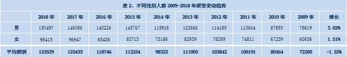 2018年男性平均薪资在150497元,女性在98415元,相差52082元。相同学历、年龄、职务层次的数据比较,男性收入均普遍高于女性。