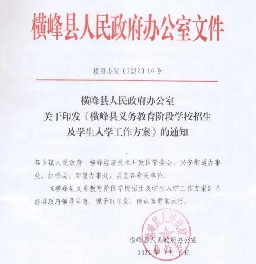 (十九)加强领导,精心组织。为做好义务教育阶段新生入学工作,成立以分管教育工作县领导为组长,县教体局、公安局(户籍科)、自然资源局(不动产登记中心)、住建局、市场监督管理局、人社局 (社保局)、县政务服务中心、大数据发展服务中心、供电公司、自来水公司、移动公司、经开区、九甲物流园、兴安街道办、岑阳镇政府、莲荷乡政府、红桥场和城区公办义务教育阶段学校等为成员单位的横峰县义务教育阶段学校招生及学生入学工作领导小组,领导小组下设办公室,设在县教体局办公,县教体局局长任办公室主任。此项工作时间紧,任务重,要求髙,各相关单位必须密切配合,服从领导小组统一安排,遵守工作纪律,自觉接受上级检查和社会监督。各中小学校要认真落实招生计划,不得擅自扩大招生规模和招生范围,不得提前招生扰乱招生秩序,不得举行考试选拔学生。进一步增强服务意识,要热心、耐心、细致地向家长做好宣传和解释工作,及时化解招生工作中出现的矛盾和问题,对群众反映的子女上学、开学问题要热情接待、耐心解释、及时处理,不推诿、不扯皮。要遵守招生纪律,坚持招生原则,促进教育公平,维护教育形象。