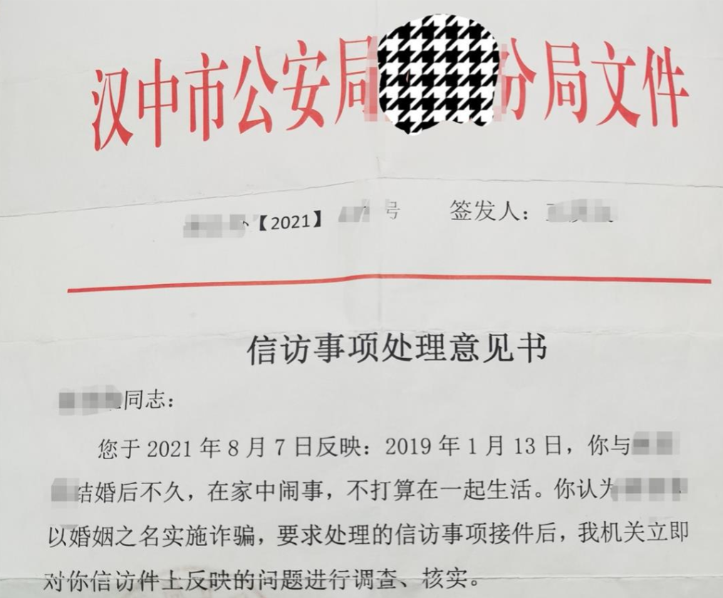 之后,愤愤不平的陈登高到派出所报了警,称刘程程一家骗婚骗钱。