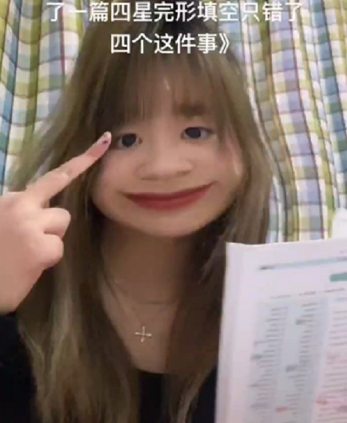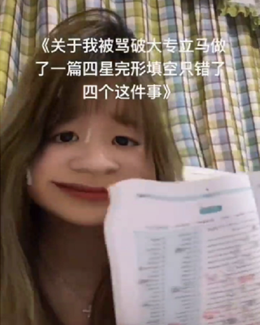 被人羞辱了学业之后,这位女同学连夜做了一道英语的完形填空题目,并且骄傲地在镜头面前展示自己只错了四个。或许她是想以这种方式证明自己的能力并不比那些普通大学生差吧。