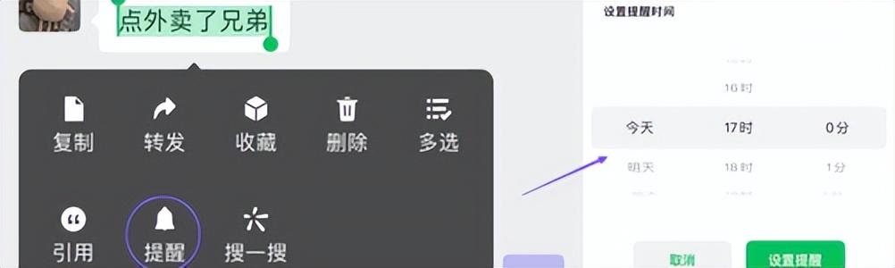 好友或者同事发来的信息需要到时间提醒?长按该条消息,选择“提醒”,设置提醒时间,计时结束后,消息会再次提醒。你也可以自己输入信息,设置个人提醒。