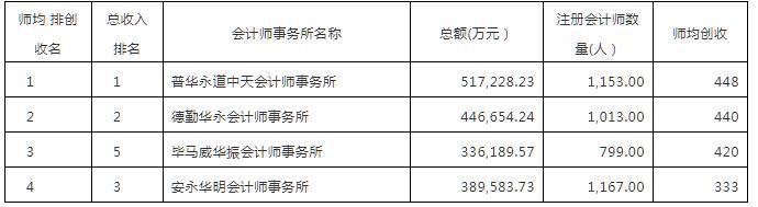 2.德勤华永会计师事务所 3.安永华明会计师事务所 4.瑞华会计师事务所 5.立信会计师事务所 6.毕马威华振会计师事务所 7.天健会计师事务所 8.信永中和会计师事务所 9.天职国际会计师事务所 10.致同会计师事务所 11.大华会计师事务所 12.大信会计师事务所 13.中天运会计师事务所 14.中汇会计师事务所 15.北京兴华会计师事务所 16.众环海华会计师事务所 17.中审亚太会计师事务所 18.中审华寅五洲会计师事务所 19.天衡会计师事务所 20.中兴财光华会计师事务所21.中兴华会计师事务所 22.利安达会计师事务所 23.江苏苏亚金诚会计师事务所 24.众华会计师事务所 25.华普天健会计师事务所 26.江苏公证天业会计师事务所 27.中勤万信会计师事务所 28.希格玛会计师事务所 29.亚太(集团)会计师事务所 30.北京永拓会计师事务所 31.广东正中珠江会计师事务所 32.立信中联会计师事务所 33.北京中天恒会计师事务所 34.北京中证天通会计师事务所 35.中准会计师事务所 36.四川华信(集团)会计师事务所37.新联谊会计师事务所 38.上会会计师事务所 39.中建华会计师事务所 40.北京天圆全会计师事务所 41.中喜会计师事务所 42.福建华兴会计师事务所 43.北京兴中海会计师事务所 44.浙江天平会计师事务所 45.天津倚天会计师事务所 46.山东和信会计师事务所 47.北京中路华会计师事务所 48.重庆康华会计师事务所 49.天津中审联会计师事务所 50.北京大地会计师事务所 51.上海沪港金茂会计师事务所 52.山东天元同泰会计师事务所 53.浙江至诚会计师事务所 54.中众益(广西)会计师事务所 55.青岛振青会计师事务所 56.四川中衡安信会计师事务所 57.新疆驰远天合会计师事务所 58.北京红日会计师事务所 59.中一会计师事务所 60.宁夏天华会计师事务所 61.陕西鸿英会计事事务所62.北京中光华会计师事务所 63.湖南建业会计师事务所 64.浙江同方会计师事务所 65.江苏华星会计师事务所 66.恒信弘正会计师事务所 67.浙江南方会计师事务所 68.湖南天平正大会计师事务所 69.北京东审鼎立国际会计师事务所 70.湖南湘能卓信会计师事务所 71.重庆凯弘会计师事务所 72.中审国际会计师事务所 73.祥浩会计师事务所 74.四川中砝会计师事务所 75.上海公信中南会计师事务所 76.江苏天宏华信会计师事务所 77.浙江新华会计师事务所 78.北京中瑞诚会计师事务所 79.上海玛泽会计师事务所 80.苏州方本会计师事务所 81.广东中天粤会计师事务所 82.北京中平建华浩会计师事务所 83.新疆宏昌天圆会计师事务所 84.无锡宝光会计师事务所 85.杭州富春会计师事务所 86.广东诚安信会计师事务所 87.浙江正健会计师事务所 88.无锡方盛会计师事务所 89.陕西益友会计师事务所 90.浙江中铭会计师事务所 91.浙江中兴会计师事务所 92.浙江中瑞江南会计师事务所 93.云南永盛会计师事务所 94.江苏公勤会计师事务所 95.上海宏大东亚会计师事务所 96.重庆华西会计师事务所 97.江苏金陵会计师事务所 98.河北金诚会计师事务所99.江苏中兴会计师事务所100.湖南友谊联合会计师事务所