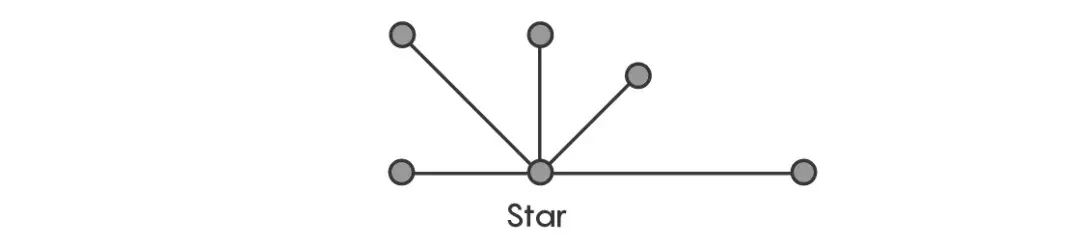 然后再设想一个星形树:1个中心点,5条边从该点延伸出去(如下图)。