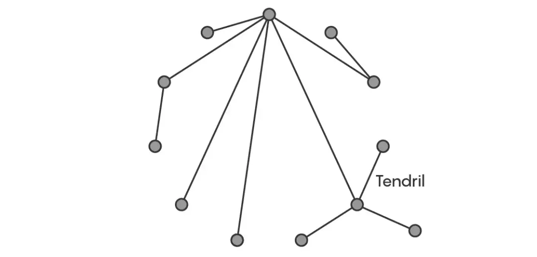 想象一棵有11条边的树,其中6条边的点集中在一起。剩下的大部分是单一的形状,像卷须一样(如下图)。