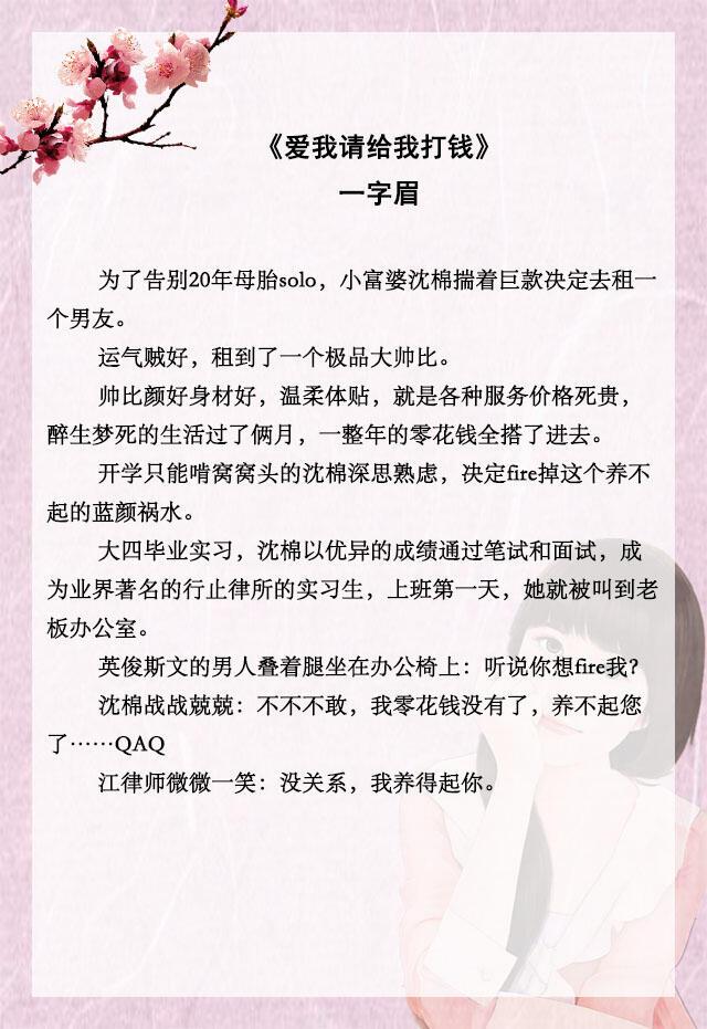 男主表面温柔其实腹黑有心机,慢慢套路女主,女主大大咧咧傻白甜一个,被男主骗了都不知道,莫名有点可爱。男主收费很贵,连肢体接触也要钱钱,后来女主零花钱不够用了,只好决定放弃包养,而男主刚好掉马,然后就开始正常的恋爱啦~