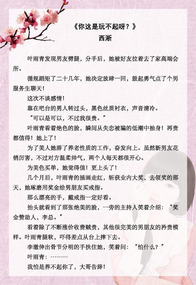 其实,男主是会所老板,不是头牌啦~原生家庭有点糟糕,导致他非常排斥感情,所以前期看起来有些冷漠,后面会被憨憨的女主打动,慢慢沦陷,虽然是女主先追的男主,但是全程不虐哦。另外还有渣男追妻火葬场追不到的情节,解气。