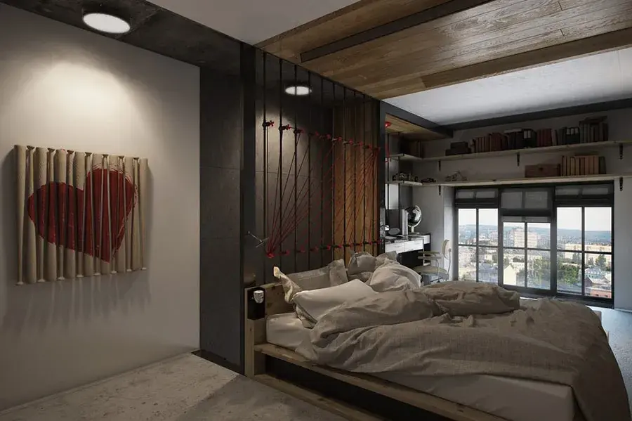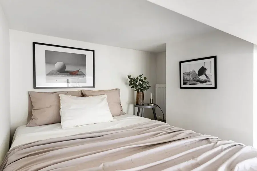 其次,由于此屋属于斜式屋顶,为避免起床时头部撞到吊顶,