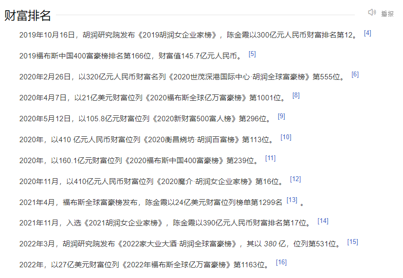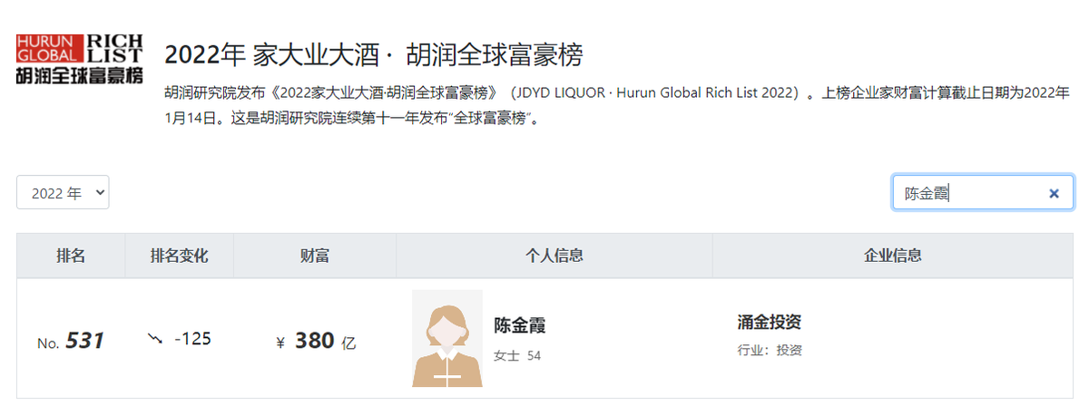 2022年,54岁的陈金霞以380亿身价入选“胡润全球富豪榜”第531名。