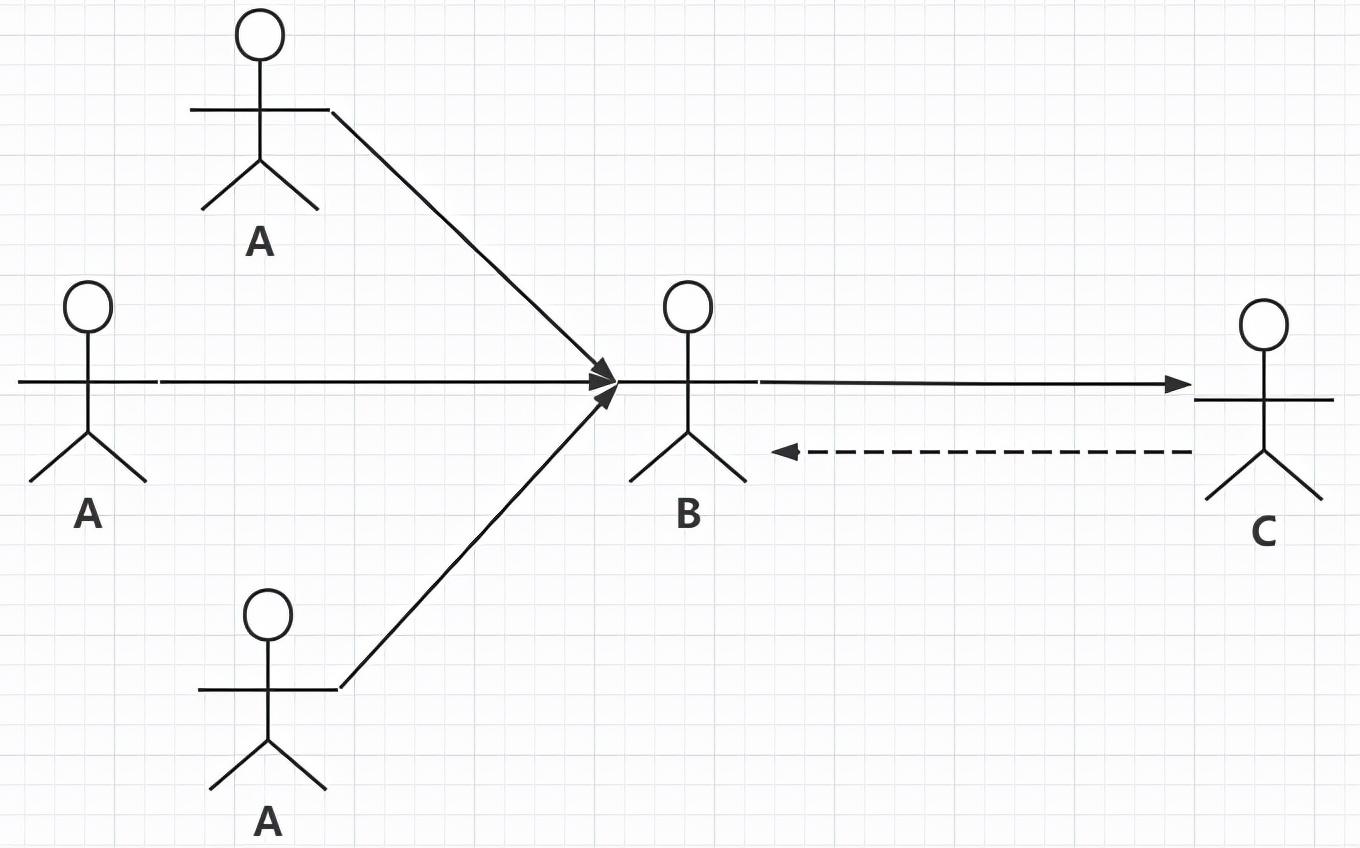 显然,这样可以只让B与C进行通信,类似于多加了一层的代理层,专门用来处理请求,再来一个现实点的例子: