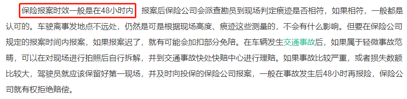 而像是报案时间要求在48小时内的,在保险事故发生后就尽快通知保司,千万别拖。