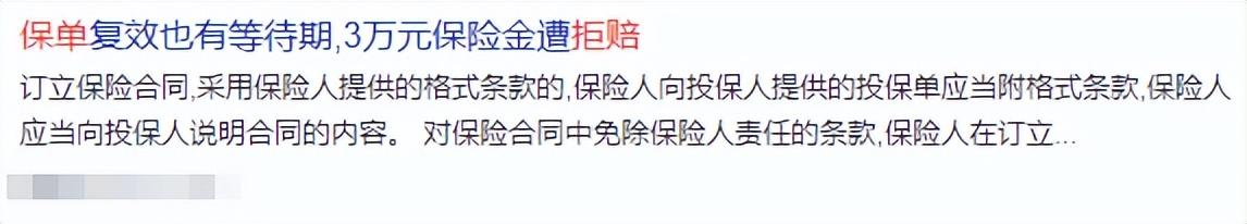 如果你因为忘记给保单缴费,导致保单中止,结果在复效后的等待期内出险,那你会这样: