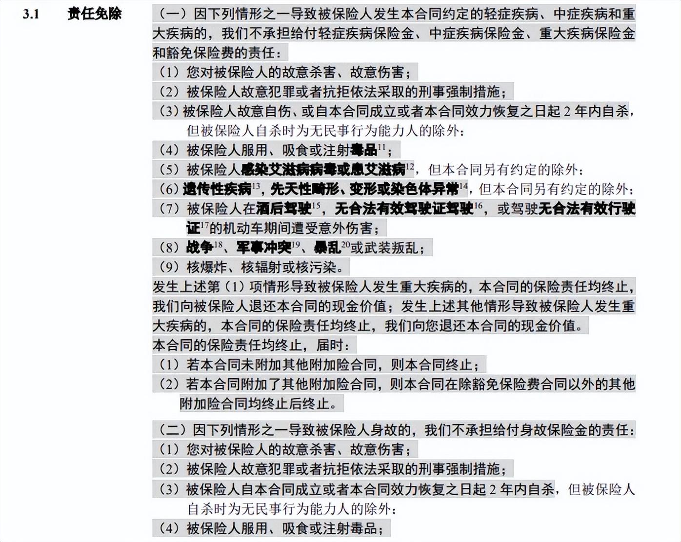 比如重疾险的免责条款长这样:
