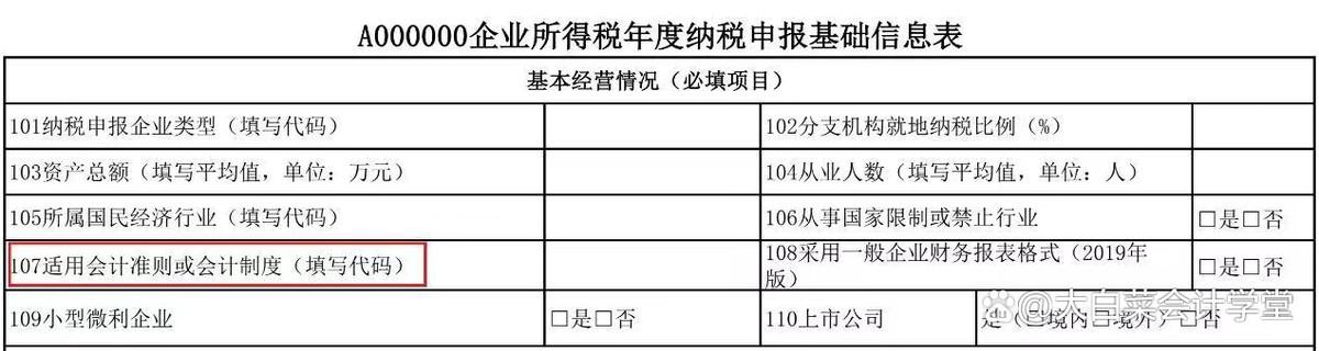 根据该表的填报说明,107会计准则或会计制度类型代码表如下: