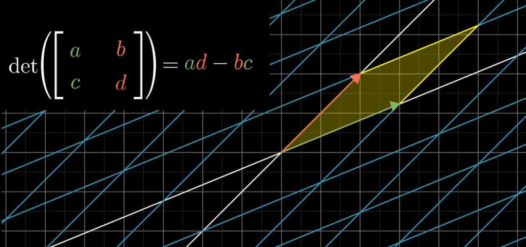 证明:我们定义一个线性变换如上图,线性变换将正方形网格变成平行四边形网格,我们假设平行四边形四个顶点也落在整数格点上。显然,这个线性变换存在逆映射,由逆矩阵公式: