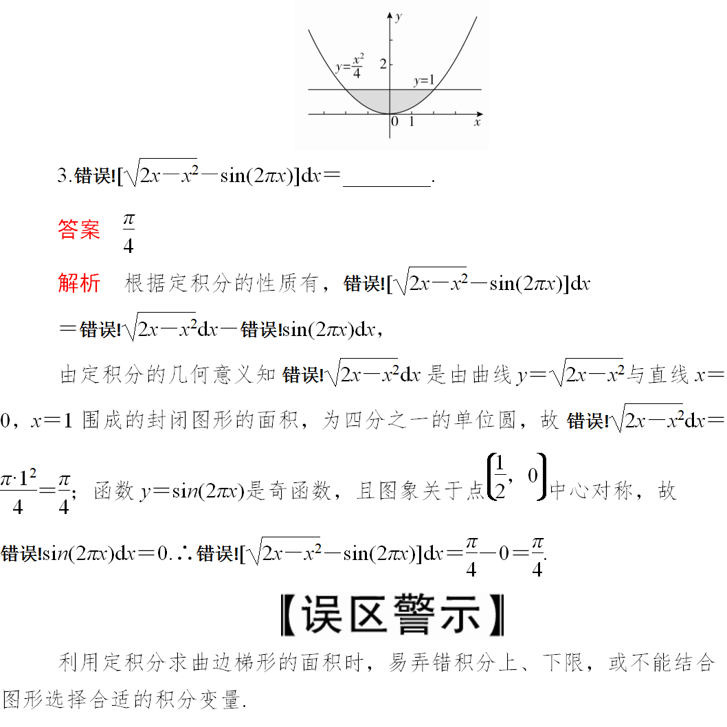 1.对定积分的考查主要是利用微积分基本定理求积分值或面积;