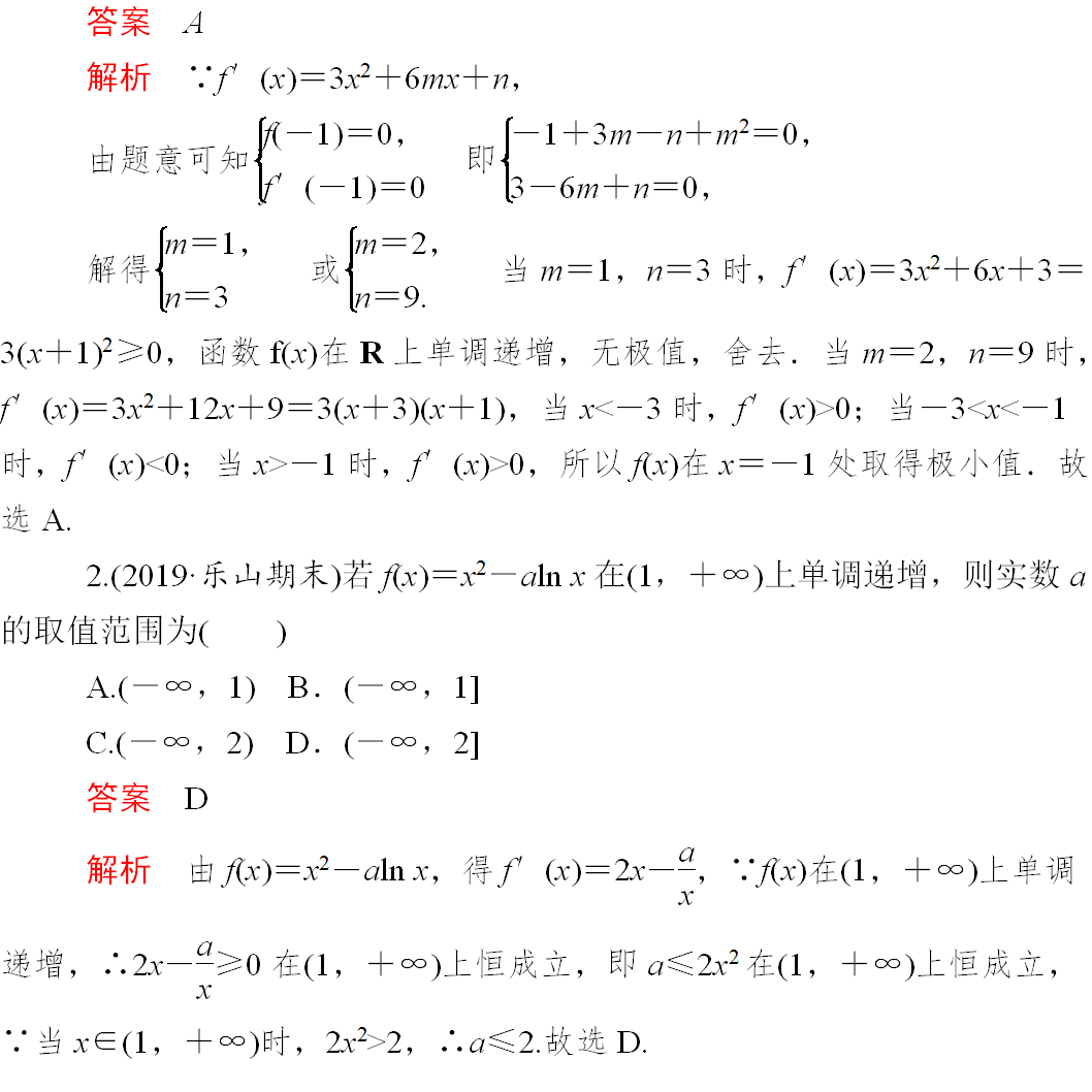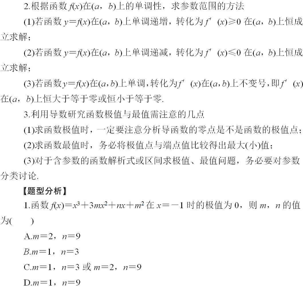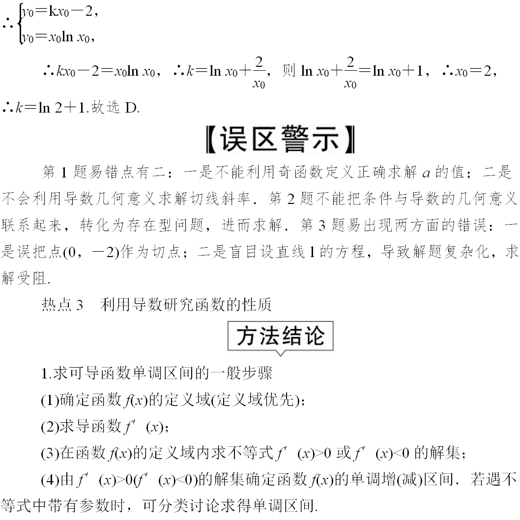 2.对导数几何意义的考查主要是求切线方程或根据切线方程求参数的取值;3.对导数综合应用的考查主要是围绕: