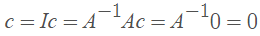 当且仅当A是奇异阵时,方程组Ax=0有解x≠0。当且仅当A是可逆的,这个方程组只有解x=0。