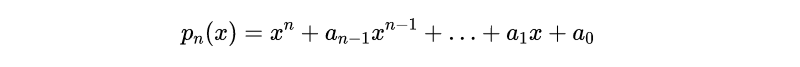 系数a_i可能不是实数,但在本系列文章中它们总是实数。在任何情况下,代数基本定理表明,方程p_n(x)=0有n个解。
