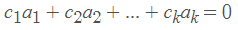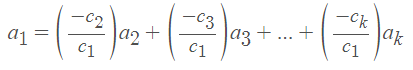 其中 c_1≠0。上面的方程表明a_1是其他向量的“加权和”。
