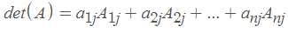 A的行列式是一个只在方阵中定义的标量,记作det(A)。它有n的阶乘项,每一项是A的元素的正负乘积: