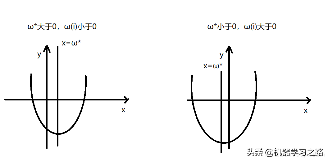 我们可以将上式中ωi分为两种情况,第一种是ωi和ω∗同号即sign(ωi)=sign(ωi∗),第二种是ωi和ω∗异号即sign(ωi)≠sign(ω∗i),我们先讨论第一种情况,为了帮助大家理解我们可以看看下图