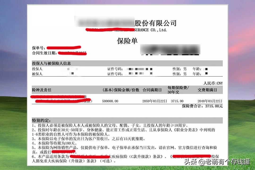 这些信息是对整个保险的总览,我们需要核对其中的信息是否准确,如果发现不对或者存疑的内容,要及时联系保险公司更正。下图为某保险的保单页,仅供学习参考。