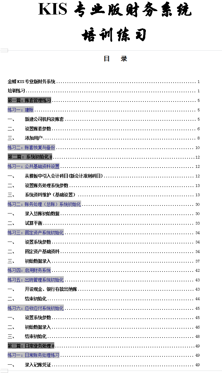 金蝶kis专业版财务软件操作涉及的内容如下: