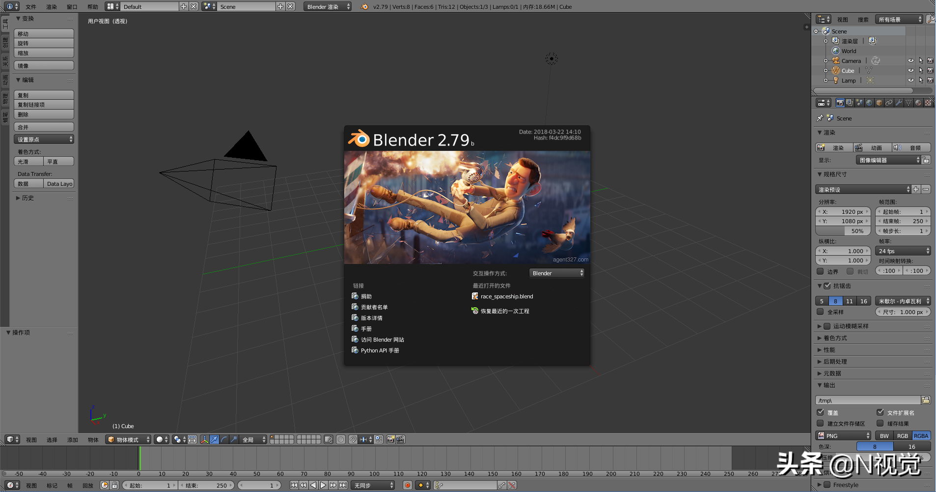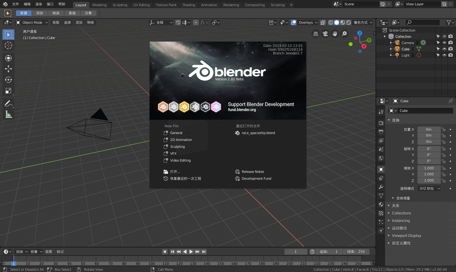 在更新了2.80版本之后,界面和操作、一些工具的革新使得软件体验越来越人性化,加上刚出的强大的eevee渲染器,使得这个软件吸引了更多的使用者。来看看2.80版本和之前的版本的软件的界面的区别,在安装2.80版本后看到的blender,是让我感觉到很惊艳的,立马看着就很高大上了。