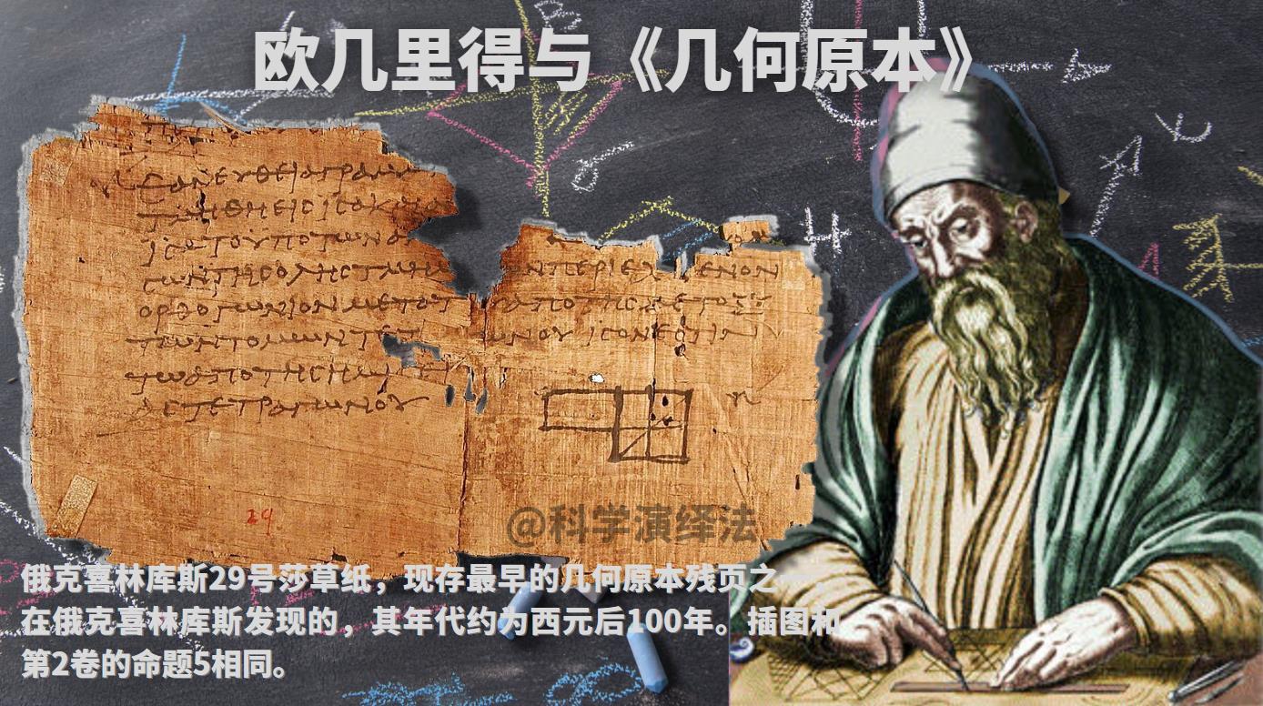 ▲ 几何原本中有许多证明的技巧,上图是俄克喜林库斯29号莎草纸《几何原本》卷2关于命题5的证明