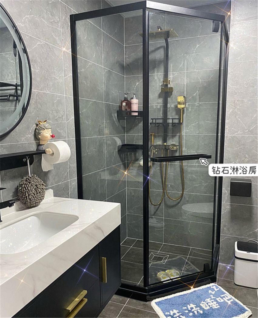 铺设防滑地砖,提前做好挡水条和地漏,再用优质美缝剂勾缝即可,这么设计虽然颜值不算高,但绝对方便清洁又耐用。