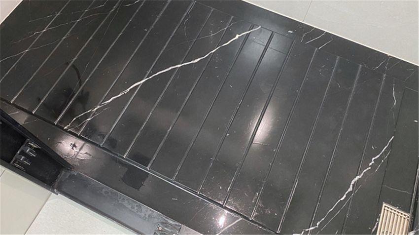 而且表面拉槽设计,缝隙太多,藏污纳垢严重,不耐用。若非土豪,不要盲目做大理石拉槽,淋浴区还是要以实用性为主。