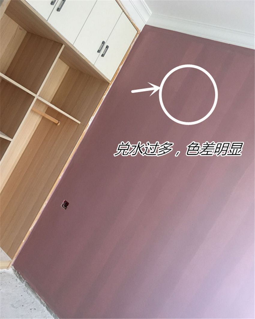 油工刷乳胶漆时直接兑水,口头说要调整比例,业主不懂,以为是正常操作,但上墙后却大翻车。
