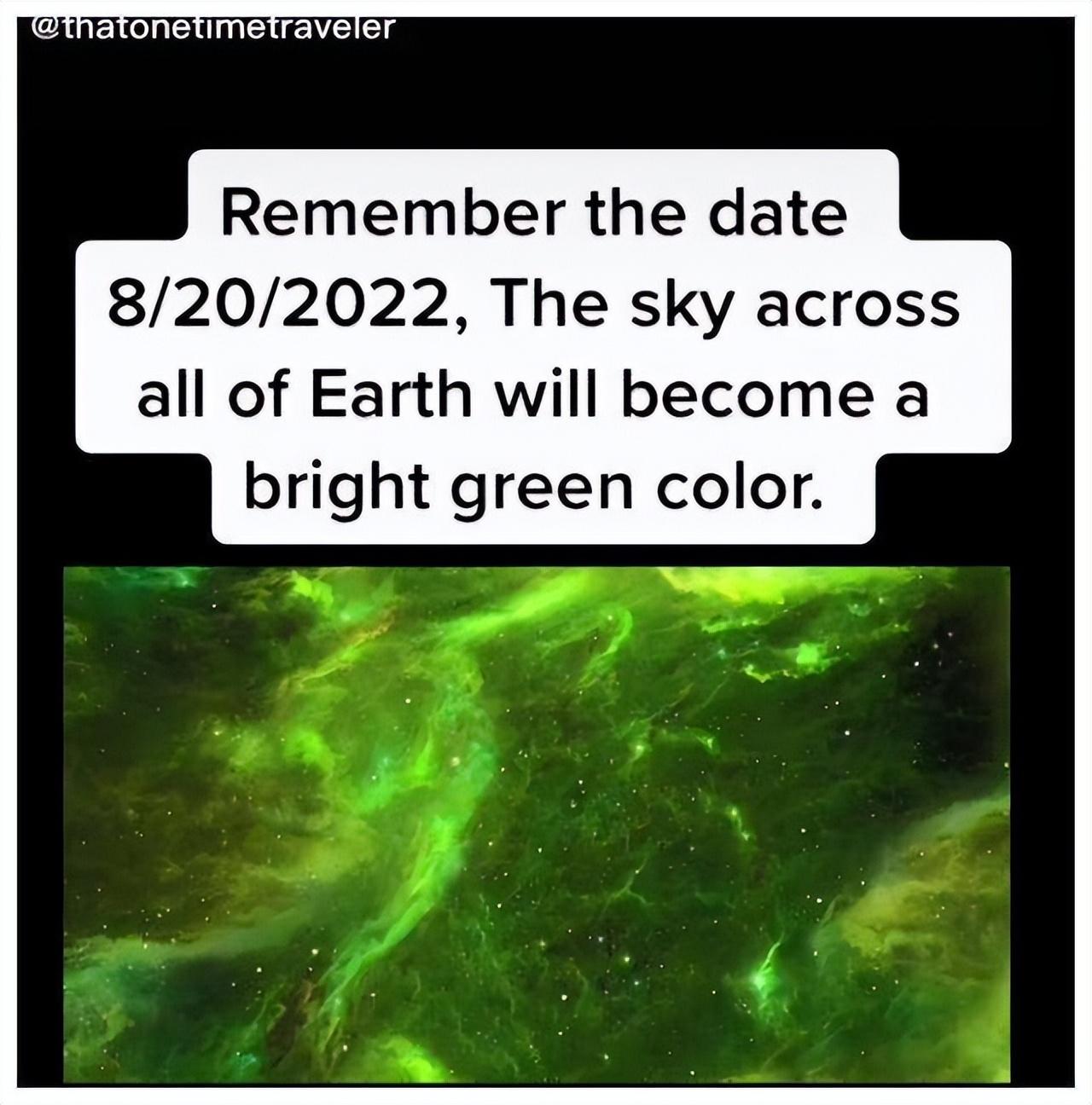 不过也有网友发现了一个问题,那就是曾有一名自称2071年的“穿越者”,在去年9月份时在社交平台上预言:今年8月天空会变成绿色。