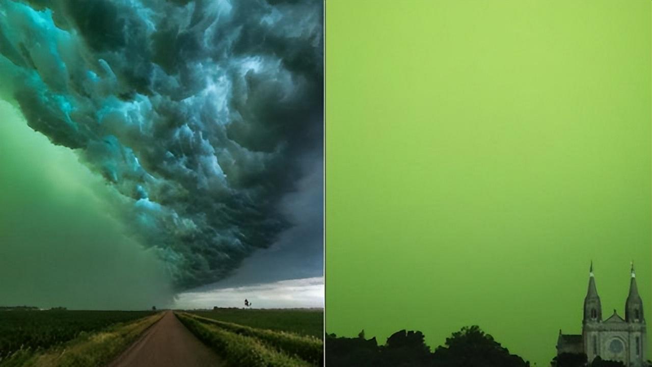 绿色天空的出现可并不常见,尽管咱们通过互联网也算是见多识广了,可绿色天空还是很少听说。