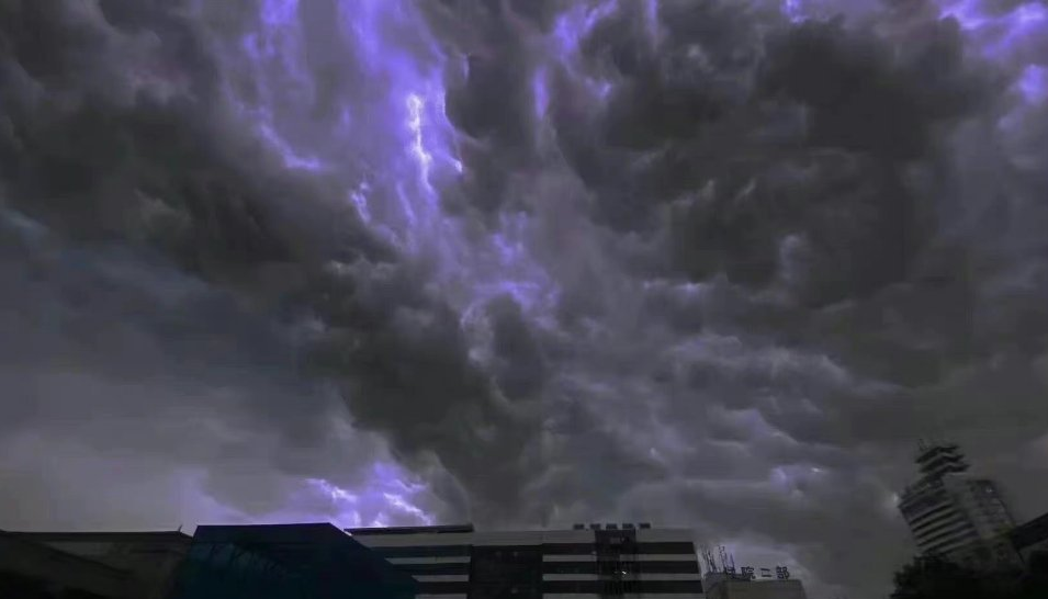 7月25日,郑州上空上演了一幕罕见的天象“绿色天空”。