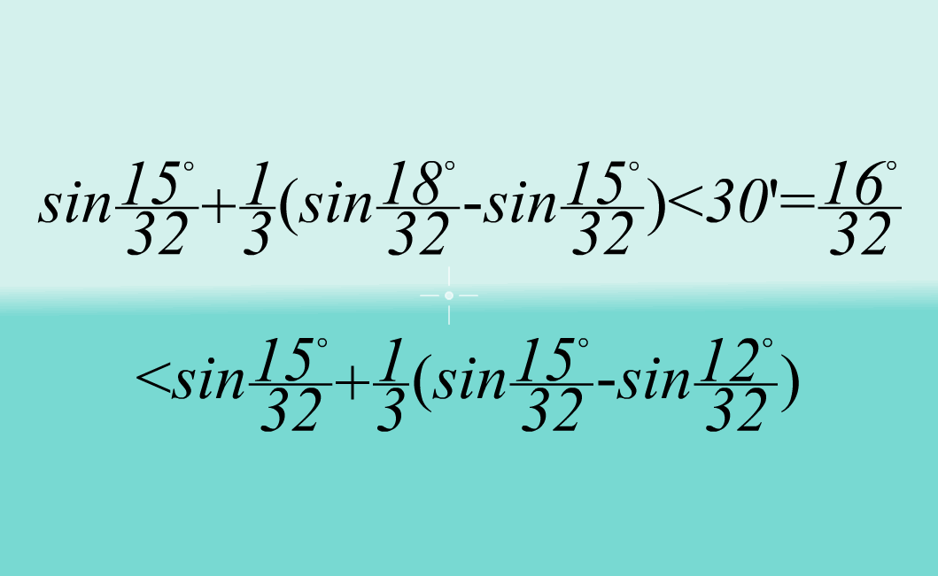 阿拉伯数学家瓦法(Wafa)是第一个计算现代意义下的“正弦值”的人,他使用“不等式逼近法”编制了高度精密的“正弦表”。在计算30′正弦值得时候,使用了不等式:
