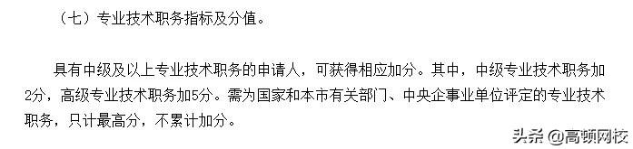 根据北京积分落户意见稿,具有中级专业技术职务的申请人,可获得2分加分,高级专业技术职务可加5分。