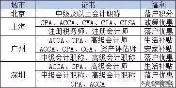 其中,CPA、ACCA、CMA、CIA、CISA以及注册税务师等会计人才可以享受不少优惠政策或是落户优惠。
