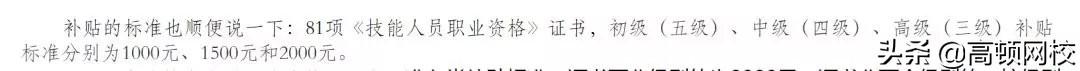 139项证书,其中81项《技能人员职业资格》证书,补贴标准分别为1000元、1500元和2000元。