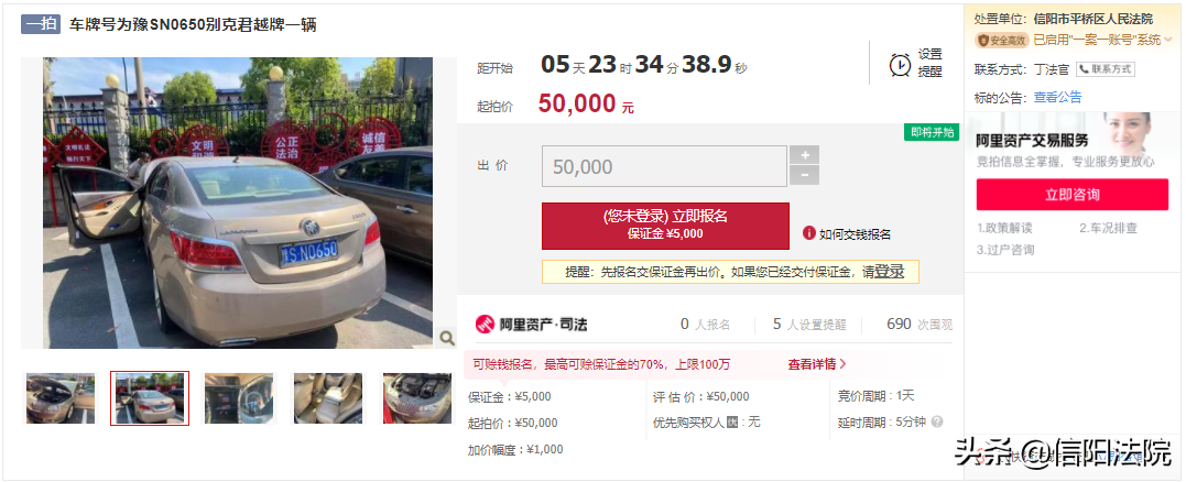 版权声明:我们致力于保护作者版权,注重分享,被刊用文章【司法拍卖汽车(信阳法院司法拍卖)】因无法核实真实出处,未能及时与作者取得联系,或有版权异议的,请联系管理员,我们会立即处理! 部分文章是来自自研大数据AI进行生成,内容摘自(百度百科,百度知道,头条百科,中国民法典,刑法,牛津词典,新华词典,汉语词典,国家院校,科普平台)等数据,内容仅供学习参考,不准确地方联系删除处理!;