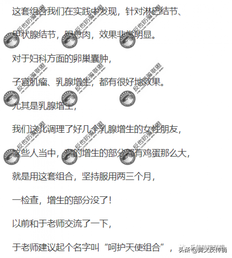 据该推文介绍,荣格的“呵护天使组合”针对淋巴结节、甲状腺结节、胆息肉,效果非常明显。对于妇科方面的卵巢囊肿,子宫肌瘤、乳腺增生,都有很好地效果。