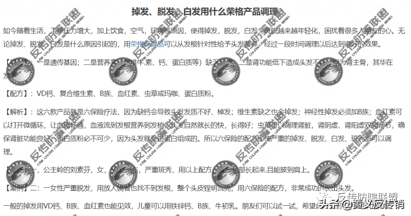 在荣格新零售的产品介绍中,不仅有能调理失眠的保健品,还有调理掉发、脱发、白发的产品,更有能调理妇科疾病的“呵护天使组合”。
