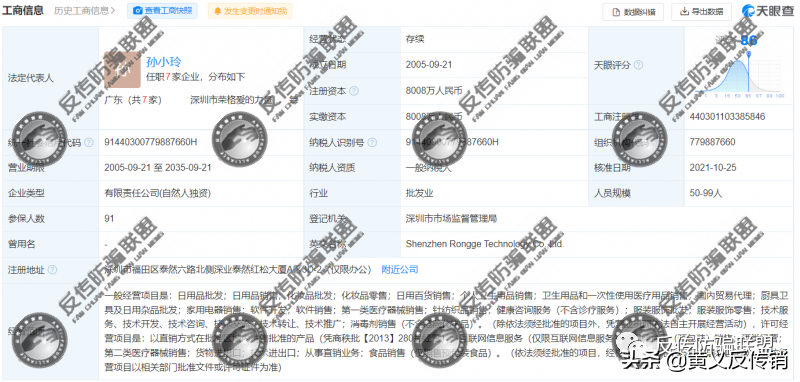 据宣传资料显示,深圳市荣格科技有限公司成立于2005年9月21日,注册与实缴资金均是8008万元,法人代表为孙小玲。据公司官网介绍,荣格科技是一家立足健康产业,集研发、生产、销售和服务于一体的高科技企业集团。总部位于深圳,产业涉及保健食品、日化用品、家用小电器等多个领域。