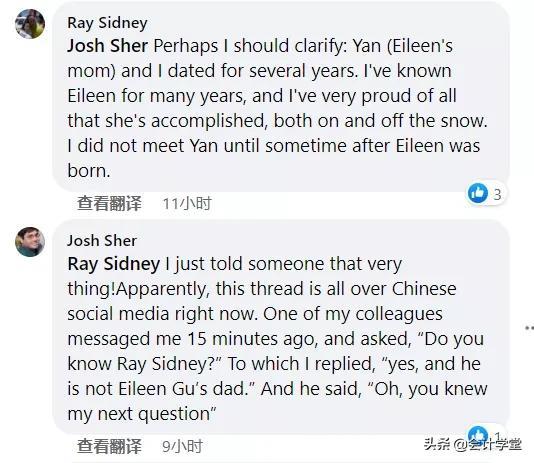 Sidney表示,「也许我应该澄清一下,我和谷燕(谷爱凌的妈妈)交往过几年,我也认识谷爱凌很多年了。我为她现在取得的成就感到骄傲,不管是雪场上还是雪场下。但我遇到谷燕是谷爱凌出生之后的事情了。」